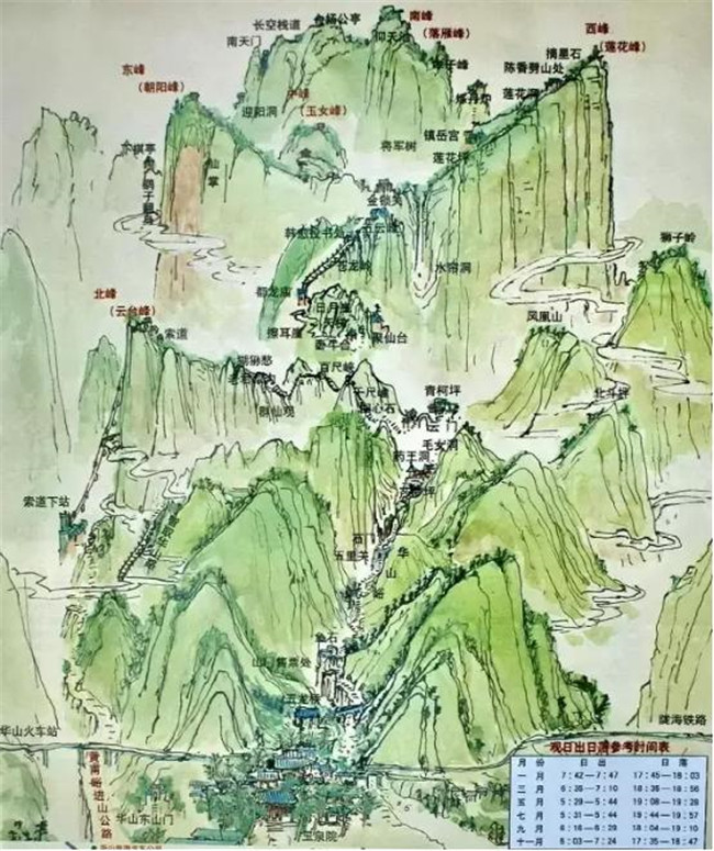 “自古華山一條路”就是當?shù)厝怂f的“華山峪”登山道,包括了自古以來華山唯一登山道上的沿途各景點,連起來就是通常所說的“自古華山一條路”。登華山最大的樂趣即為登山本身,一邊克服種種山路的艱險,一邊移步換景觀賞沿途風(fēng)光,所以這條經(jīng)典的登山路線至今仍然是登華山的最佳選擇。