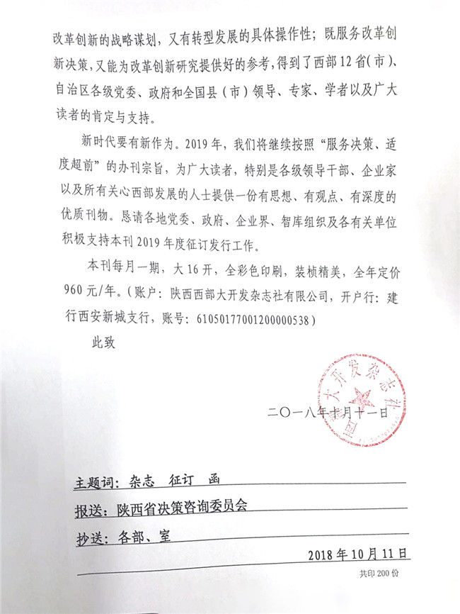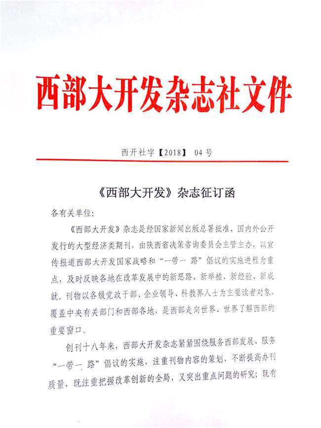 《西部大開(kāi)發(fā)》雜志征訂函