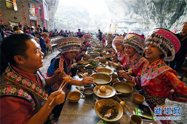 10月14日,興文石海世界地質(zhì)公園在園區(qū)內(nèi)擺起長桌宴,迎接來自遠(yuǎn)方的賓客。