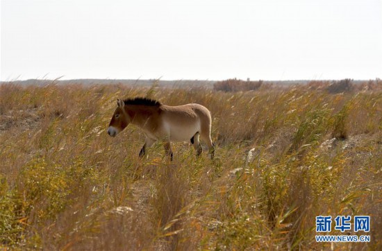 這是10月16日在敦煌西湖國(guó)家級(jí)自然保護(hù)區(qū)拍攝的普氏野馬。 新華社記者 胡偉杰 攝