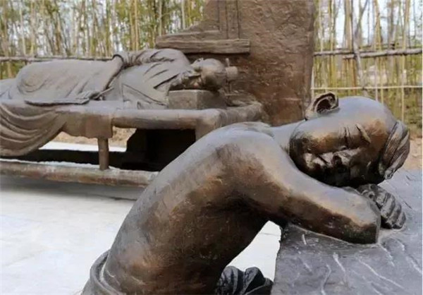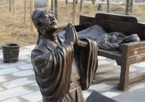 庾黔婁,南齊高士,任孱陵縣令。赴任不滿(mǎn)十天,忽覺(jué)心驚汗流,預(yù)感家中有事,當(dāng)即辭官返鄉(xiāng)?;氐郊抑?,知父親已病重兩日。醫(yī)生囑咐說(shuō):“要知道病情吉兇,只要嘗一嘗病人糞便的味道,味苦就好。” 黔婁于是就去嘗父親的糞便,發(fā)現(xiàn)味甜,內(nèi)心十分憂(yōu)慮,夜里跪拜北斗星,乞求以身代父去死。幾天后父親死去,黔婁安葬了父親,并守制三年。