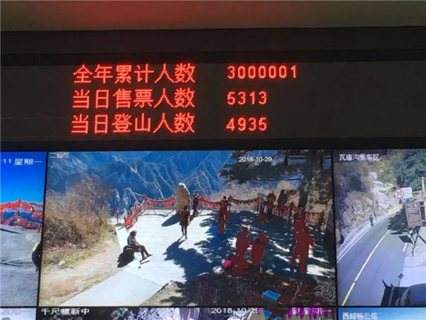 在全國慶祝改革開放40周年之際,10月29日11時(shí),華山景區(qū)迎來了今年購票登山人數(shù)300萬人次的歷史性時(shí)刻。