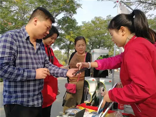 營銷中心工作人員耐心細(xì)致地幫助游客參與活動(dòng)