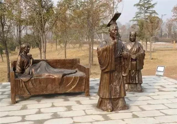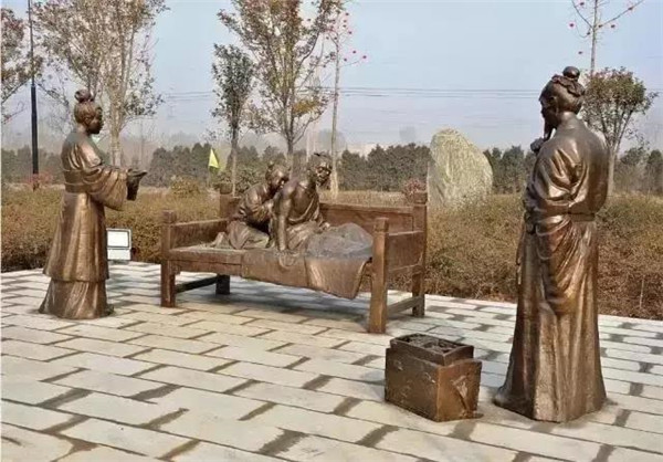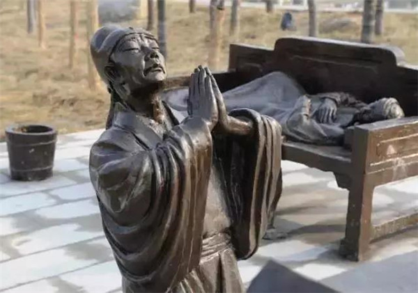 漢文帝劉恒,漢高祖第三子,為薄太后所生。高后八年(前180)即帝位。他以仁孝之名,聞于天下,侍奉母親從不懈怠。母親臥病三年,他常常目不交睫,衣不解帶;母親所服的湯藥,他親口嘗過后才放心讓母親服用。他在位24年,重德治,興禮儀,注意發(fā)展農(nóng)業(yè),使西漢社會穩(wěn)定,人丁興旺,經(jīng)濟(jì)得到恢復(fù)和發(fā)展,他與漢景帝的統(tǒng)治時期被譽為“文景之治”。