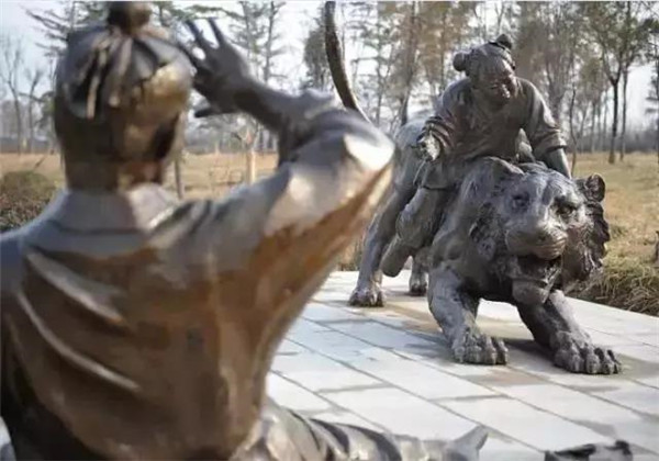 春秋時期的郯子,父母年老,患眼疾,需飲鹿乳療治。他便披鹿皮進(jìn)入深山,鉆進(jìn)鹿群中,擠取鹿乳,供奉雙親。一次取乳時,看見獵人正要射殺一只麂鹿,郯子急忙掀起鹿皮現(xiàn)身出走,將擠取鹿乳為雙親醫(yī)病的實情告知獵人,獵人敬他孝順,以鹿乳相贈,護(hù)送他出山。
