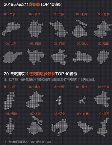 不過,今年最亮眼的地域榜單來自“進(jìn)步”飛快的10個大省——它們以最快的速度實(shí)現(xiàn)了對2017年全天成交額的超越。除了北京、重慶、上海和河南,山西、寧夏、河南、天津、遼寧、吉林、陜西都屬于名副其實(shí)的“剁手新生代”。