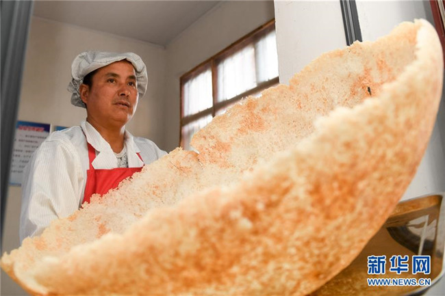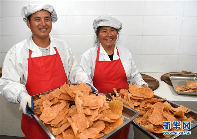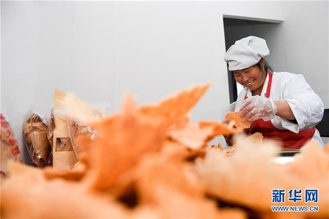今年49歲的汪明祥和47歲的姚新花是安徽省涇縣黃村鎮(zhèn)沙元村的一對農(nóng)民夫妻。2013年,汪明祥突發(fā)疾病花光了家里的積蓄,并喪失了一定的勞動能力。2014年,汪明祥一家被確定為建檔立卡貧困戶。為了靠自己的雙手實現(xiàn)脫貧,汪明祥和妻子姚新花在家里開始生產(chǎn)手工鍋巴,雖然收入不高,但是經(jīng)濟(jì)狀況慢慢好轉(zhuǎn)起來,于2016年順利實現(xiàn)脫貧。 脫貧后的夫妻倆開始琢磨如何進(jìn)一步發(fā)展自家的手工鍋巴生意。今年,汪明祥和妻子姚新花利用當(dāng)?shù)胤鲐毿☆~貸款和自籌資金創(chuàng)辦的強(qiáng)源鍋巴廠投產(chǎn)。由于口味地道,價格不高,汪明祥家的鍋巴受到市場的歡迎,平均每天生產(chǎn)鍋巴50余斤,日均銷售額400多元。“不等不靠,甩窮帽,我們夫妻倆靠手藝脫了貧,也有信心實現(xiàn)致富。”汪明祥說。新華社記者 劉軍喜攝