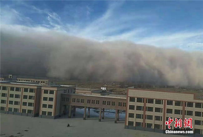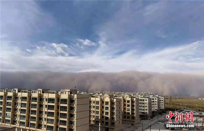 11月25日,甘肅張掖沙塵暴來襲,“沙墻”高達(dá)上百米,伴有7至8級大風(fēng),張掖消防啟動應(yīng)急預(yù)案。高繼文 攝
