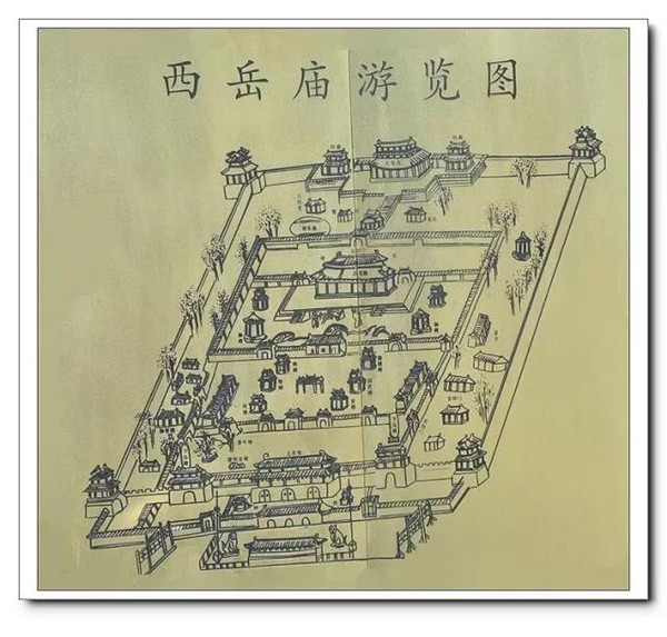 人們走過去一看,兔子跑出的痕跡,竟是一幅線條清晰、美觀大方的建筑圖!這是正門、樓閣、牌坊,那是大殿、金水橋、御道......眾人大喜過望,知道是岳神借靈兔點化,連忙按圖而筑。