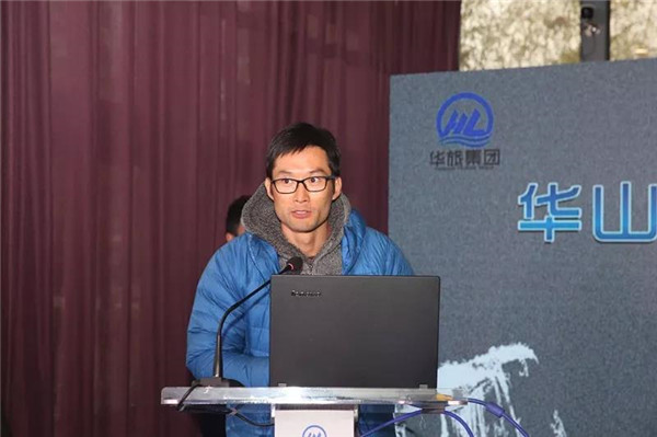 攀巖名將、洲際定線(xiàn)員邱洪樹(shù)介紹華山巖壁考察情況