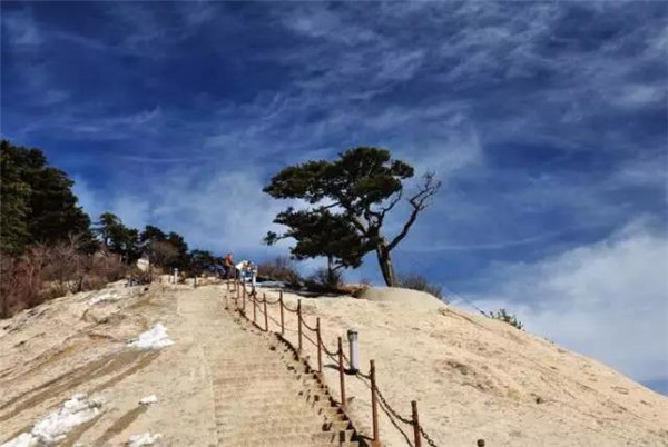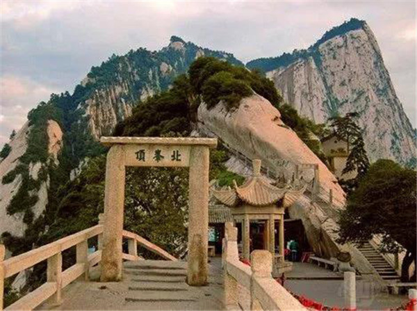 北峰海拔1614米,為華山主峰之一,因位置居北得名。北峰四面懸絕,上冠景云,下通地脈,巍然獨(dú)秀,有若云臺(tái),因此又名云臺(tái)峰。唐李白《西岳云臺(tái)歌送丹丘子》詩曾寫到:“三峰卻立如欲摧,翠崖丹谷高掌。白帝金精運(yùn)元?dú)?,石作蓮花云作臺(tái)。”