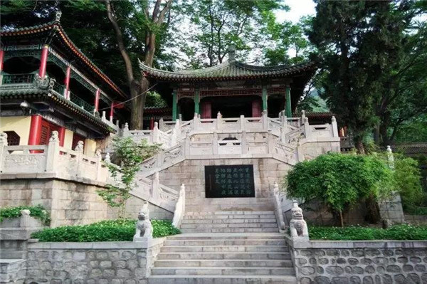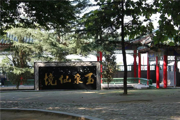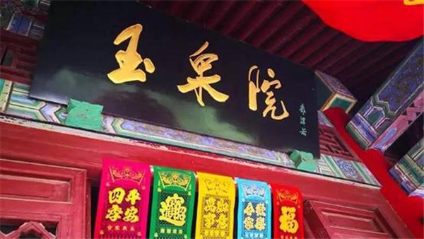 玉泉院的整體布局順應了中國傳統(tǒng)的園林建筑布局風格,“對稱美”的審美觀體現(xiàn)得十分鮮明,整體格局十分嚴道。正門居中,兩側(cè)回廊,西北東北兩角各一亭。西院面東有七真殿,東院面西就有華岳圣母殿。西有山蘇亭、希夷睡洞,東有運氣亭、呂祖洞。正殿直對大門,用墻分割為一單體院落,拱門與前院相通、從視覺心理上給人以靜止、穩(wěn)重和居塵出塵之感,體現(xiàn)了道家中規(guī)中矩的“無為”思想和追求完善的審美情趣。