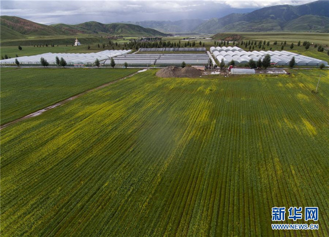 這是理塘縣濯桑鄉(xiāng)濯?,F(xiàn)代農(nóng)業(yè)雙創(chuàng)中心(2018年8月11日無人機拍攝)。理塘縣甲洼鎮(zhèn)、濯桑鄉(xiāng)等鄉(xiāng)鎮(zhèn)集中使用產(chǎn)業(yè)扶持資金,跨村集中抱團發(fā)展設(shè)施蔬菜大棚,讓貧困人口在園區(qū)獲得穩(wěn)定收益。新華社記者 江宏景 攝