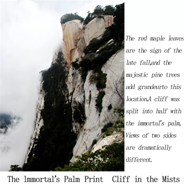 我獨(dú)自一人出發(fā),一段垂直的石隙,鐵條插在巖石之中,道路向下延伸,風(fēng)刮得很大,我雙手麻木,死死地抓住鐵鏈,慢慢向下挪動(dòng),腳下是一千米深的峽谷,這是一個(gè)恐懼與光榮交織的時(shí)刻。我走在棧道上,左右上下地欣賞著風(fēng)景,周?chē)笊骄薮蠖陋?dú),我感覺(jué)自己就像是一個(gè)塵埃,真的太渺小了。冰屑落到頭頂上,幸虧不是石塊。我聽(tīng)到一群中國(guó)游客笑著從石隙中下來(lái),我停下來(lái)照了幾張相,要回去必須原路返回,這同樣不容易,我很感謝地歸還了手套,繼續(xù)向其他山峰攀登。由于有安全保護(hù)措施,因此我不認(rèn)為華山是“世界上最危險(xiǎn)的道路”。
