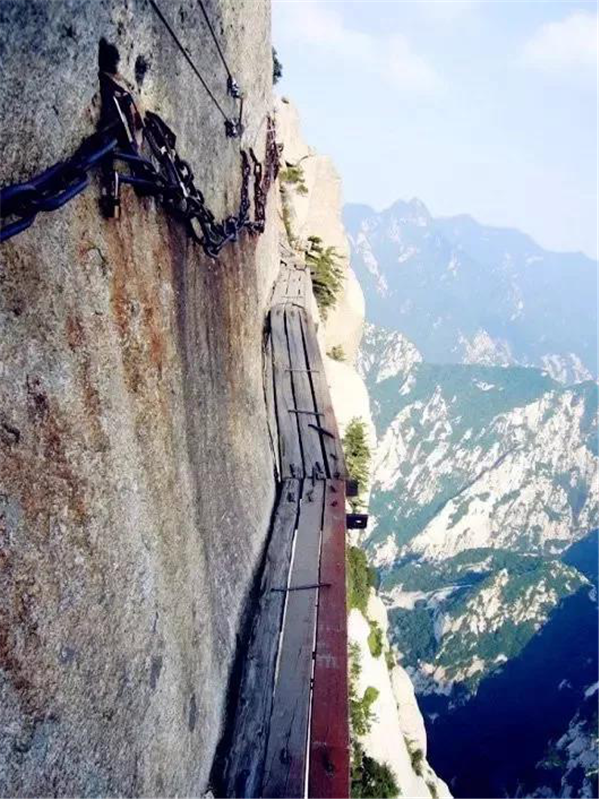 我站在華山兩塊窄窄的木板上,依靠鐵釘楔入巖石作為支撐,我的腳下,是1000米的深谷,冰雪的路面很滑。我來(lái)華山旅游純粹是因?yàn)樵诨ヂ?lián)網(wǎng)上瘋傳的一張圖片,也就是指“世界上最危險(xiǎn)的登山路”那張?,F(xiàn)在有了安全保護(hù)措施,實(shí)際上用不著擔(dān)心危險(xiǎn)了??謶致可闲念^,頭腦變得有些麻木。西安是中國(guó)的古城,在強(qiáng)盛朝代時(shí)期占有重要的歷史地位。