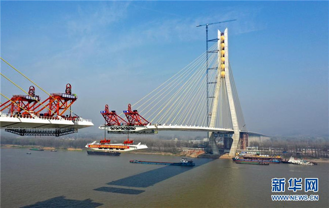 安徽池州長江公路大橋主橋長5.8千米,為雙塔雙索面斜拉橋,主跨828米,是連接安徽長江兩岸的又一條快速通道,預(yù)計3月底實現(xiàn)主橋合龍,6月底具備通車條件。