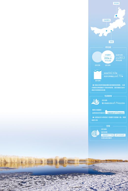 2018年,呼倫湖實現了水量持續(xù)穩(wěn)定增加和各項水質指標明顯改善。與2012年生態(tài)修復初期檢測值相比,呼倫湖水域面積擴大了282.2平方公里,水位上升了2.72米,水域面積達到2056.6平方公里,水位達到542.63米。