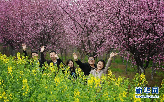 3月19日,游人在陜西勉縣新街子鎮(zhèn)踏春賞花。近日,陜西省漢中市勉縣新街子鎮(zhèn)數(shù)十畝美人梅開(kāi)放,吸引游人前來(lái)踏春賞花。 新華社記者 劉瀟 攝