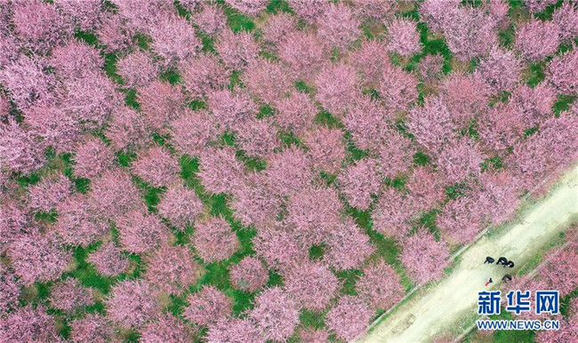 3月19日,游人在陜西勉縣新街子鎮(zhèn)觀賞美人梅(無(wú)人機(jī)拍攝)。近日,陜西省漢中市勉縣新街子鎮(zhèn)數(shù)十畝美人梅開(kāi)放,吸引游人前來(lái)踏春賞花。 新華社記者 劉瀟 攝