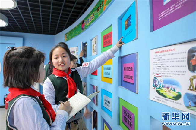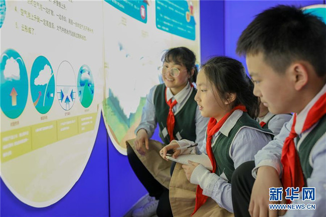 當(dāng)日,安徽省合肥市合作化南路社區(qū)組織第六十七中學(xué)小學(xué)部學(xué)生來到市氣象科普館,學(xué)習(xí)氣象科普知識,迎接3月23日世界氣象日的到來。 新華社記者 曹力 攝