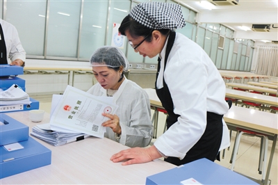 北京市陳經(jīng)綸中學(xué)高中校區(qū)負(fù)責(zé)人檢查食堂營業(yè)執(zhí)照。校方供圖