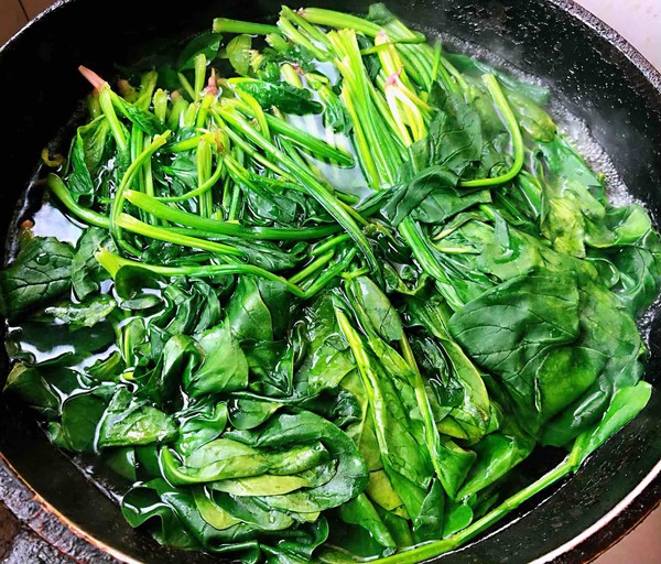 2.鍋中燒開水放入菠菜焯水至菠菜剛剛變色即可時間不可過長