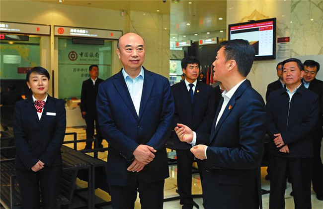 4月2日,省長劉國中在中國銀行陜西省分行調(diào)研金融工作。 記者 母家亮攝