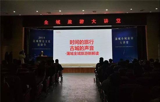 4月1日,第三屆蒲城梨花文化旅游節(jié)系列活動“全域旅游大講堂”在蒲城廣電中心10樓演播廳開講。特邀請專家學者賈云峰老師以授課的方式座談古今、論道蒲城,深挖蒲城縣域旅游資源,在大華山旅游圈的整合下,針對蒲城旅游資源,全面實施蒲城全域旅游定位、實操及營銷,贏得自己的地位與影響力、市場占有率。