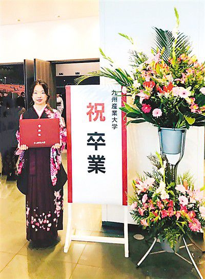 田龍今年3月從日本九州產(chǎn)業(yè)大學畢業(yè)。在日本學校內(nèi),畢業(yè)式十分受重視,老師、家長、學弟學妹都會來參加。后輩會由衷地表達祝福,父母會叮囑孩子畢業(yè)后要更成熟地對待事物,更理性地面對社會。畢業(yè)式還意味著從此刻開始,要離開父母的羽翼,承擔起自己的生活。