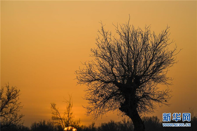 這是在依明家附近拍攝的位于塔克拉瑪干沙漠腹地的胡楊(3月18日攝)。新華社記者 胡虎虎 攝