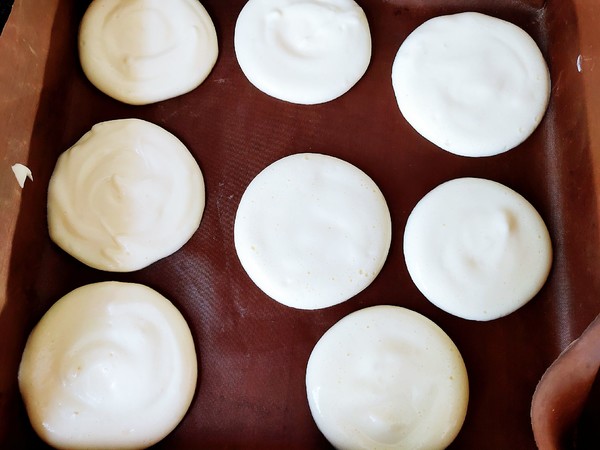 10.烤箱提前預(yù)熱,烤盤鋪油紙,擠出圓薄餅狀。