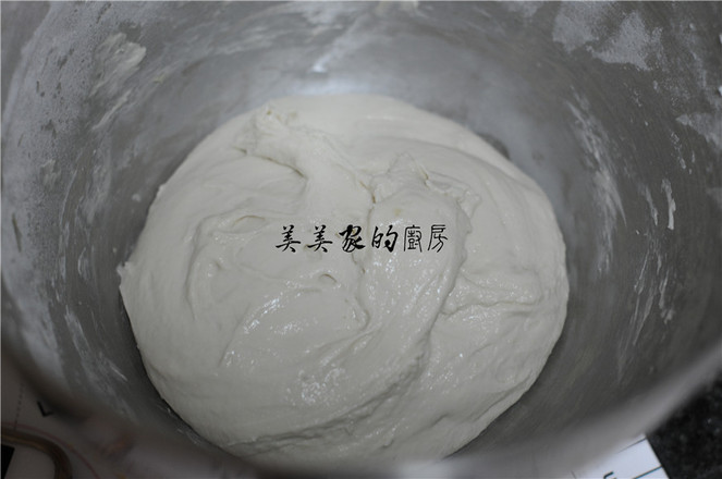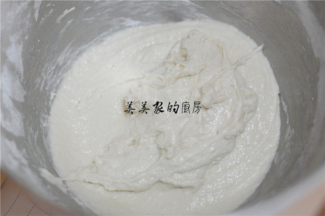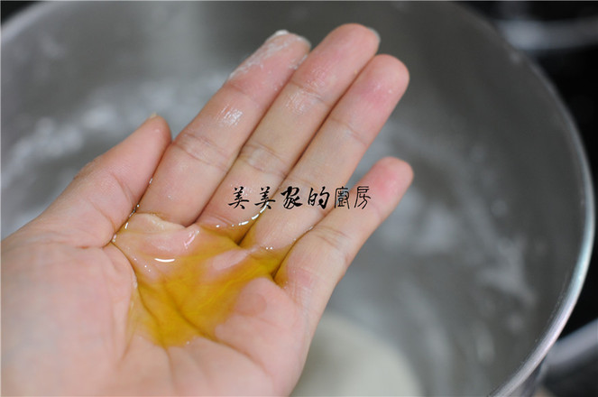 3.用筷子和成細(xì)膩、濕潤的面團。蓋上保鮮膜,將面團醒發(fā)20分鐘。