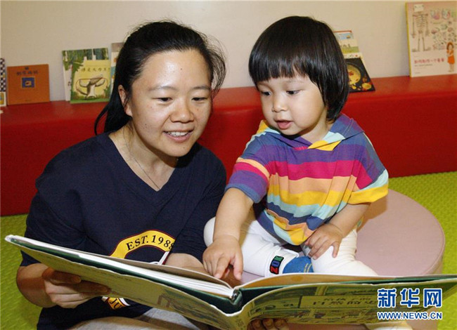 5月12日,一名孩子在家長陪伴下閱讀繪本。新華社記者 劉蓮芬 攝
