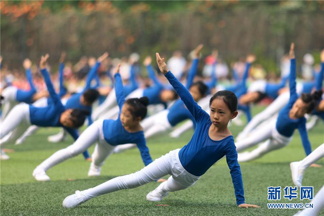 當(dāng)日,天津市和平區(qū)岳陽道小學(xué)舉行校園運動會,全校2000余名學(xué)生通過參與十余項團(tuán)隊特色體育活動,感受體育運動的魅力。 新華社發(fā)(劉東岳 攝)