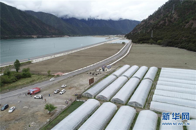 這是位于川藏公路旁的久巴村草莓種植大棚(5月14日,無(wú)人機(jī)拍攝)。新華社記者 李鑫 攝