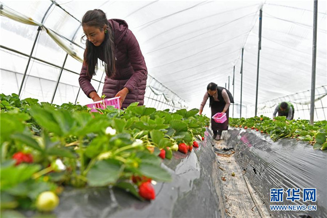 如今,村里為28戶家庭按每戶兩座的標(biāo)準(zhǔn)統(tǒng)一修建鋼架結(jié)構(gòu)溫室大棚,總占地50多畝。去年,平均每個(gè)大棚草莓產(chǎn)量達(dá)800斤,全村全年草莓種植總收入達(dá)185萬(wàn)余元。新鮮清甜的草莓,通過(guò)川藏公路在較短時(shí)間便可進(jìn)入雪域高原的尋常百姓家。