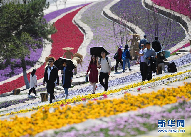 游客在北京世園會天田山游玩(5月1日攝)。新華社記者 張晨霖 攝