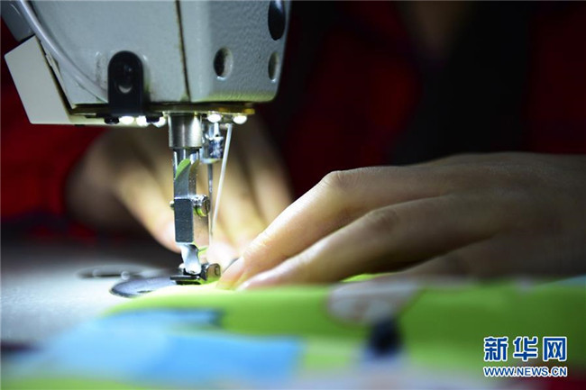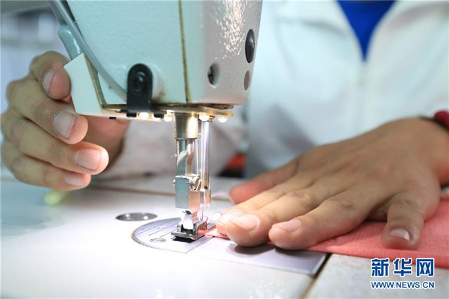 5月15日,在畢節(jié)市特殊教育學(xué)校,一名學(xué)生在進行縫紉加工。 新華社發(fā)(王純亮 攝)