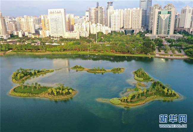 廣西南寧市從2017年底啟動(dòng)南湖水質(zhì)改善項(xiàng)目。經(jīng)過(guò)一年多的建設(shè),已形成水面人工島花香四溢、水下水草依依的生態(tài)凈化系統(tǒng)。加之步道、涼亭、長(zhǎng)廊等配套工程的建設(shè),南湖成為廣大市民休閑觀光和鍛煉的重要場(chǎng)所。 新華社記者 周華 攝