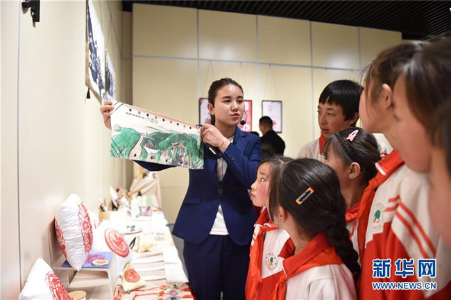 5月31日,在寧夏固原博物館,講解員為學生們介紹創(chuàng)意產品。新華社記者 唐亞蒙 攝
