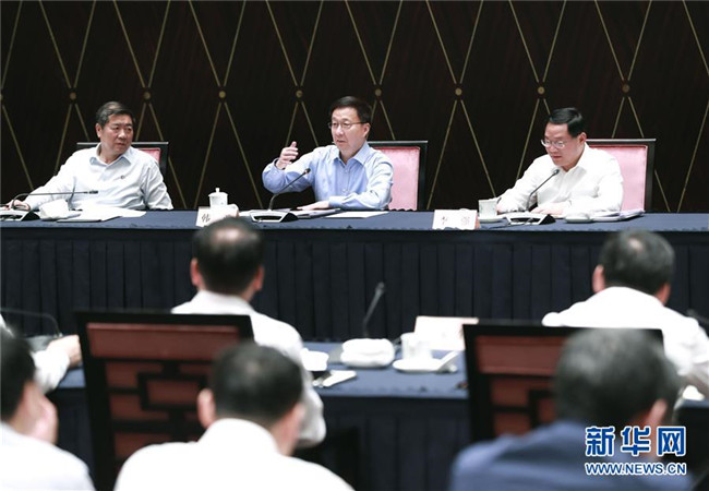 6月3日,中共中央政治局常委、國務(wù)院副總理、推動長三角一體化發(fā)展領(lǐng)導小組組長韓正在上海主持召開推動長三角一體化發(fā)展領(lǐng)導小組會議。 新華社記者 龐興雷 攝