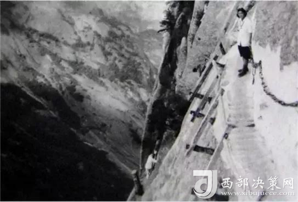 明代“后七子”之一的李攀龍《太華山記》記述:“出南天門向西就是棧道,棧雖有銅柱鐵索攔護(hù),然闊不盈尺。行二十余丈方至盡頭。下折為井,高約三丈,旁出復(fù)為棧……”
