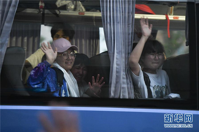 6月9日,合肥市第三十五中學西藏班的初三畢業(yè)生乘坐大巴離開校園。