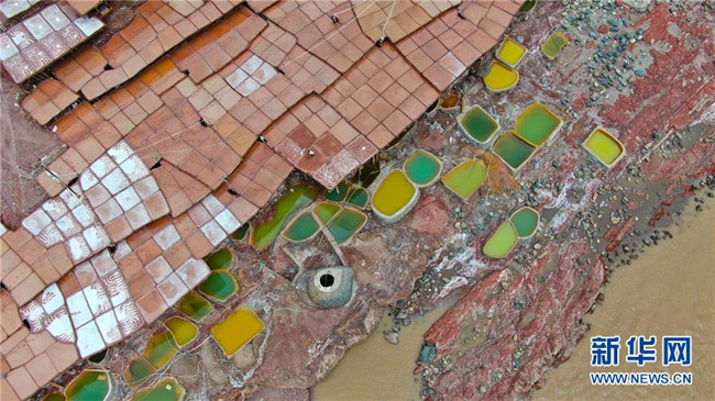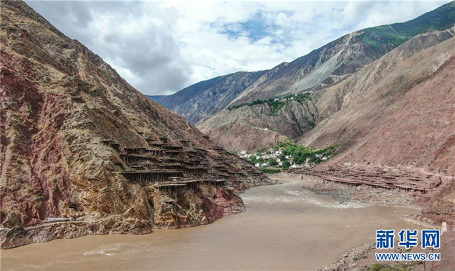 這是位于瀾滄江畔的西藏芒康縣納西民族鄉(xiāng)加達(dá)村的鹽田(6月4日無人機拍攝)。新華社記者晉美多吉攝