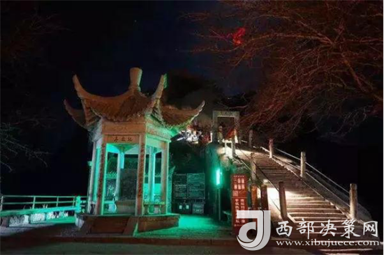 山間燈火通明,全程都有燈光指引。