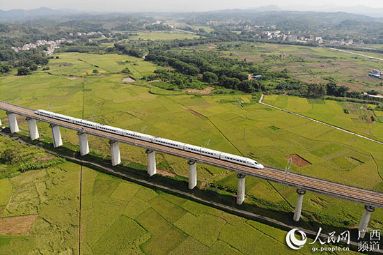 在廣西壯族自治區(qū)和鐵路部門的共同推動下,主動協(xié)調路地各方,最終實現(xiàn)7月10日南寧東至香港西九龍G417/8次高速動車組列車開行,并將單程運行時間控制在4小時以內(nèi)。