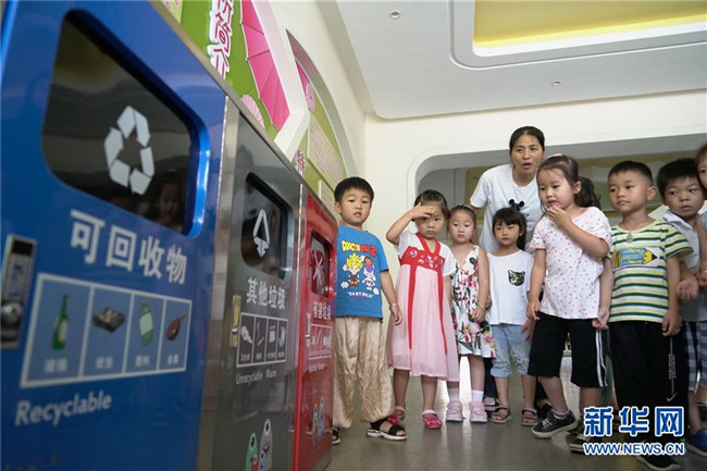 當(dāng)日,浙江省湖州市德清縣乾元鎮(zhèn)第一幼兒園的小朋友在老師和家長的帶領(lǐng)下,通過唱童謠、做游戲等形式,輕松學(xué)習(xí)垃圾分類相關(guān)知識,為維護環(huán)境衛(wèi)生作出努力。