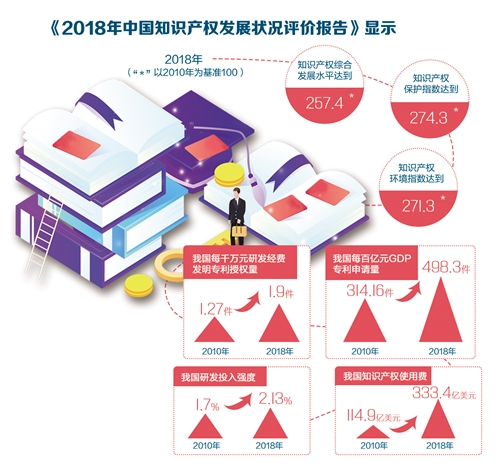 《2018年中國(guó)知識(shí)產(chǎn)權(quán)發(fā)展?fàn)顩r評(píng)價(jià)報(bào)告》顯示,2018年我國(guó)知識(shí)產(chǎn)權(quán)綜合發(fā)展指數(shù)顯著提升,知識(shí)產(chǎn)權(quán)運(yùn)用進(jìn)步尤為顯著,社會(huì)公眾及創(chuàng)新主體的知識(shí)產(chǎn)權(quán)意識(shí)進(jìn)一步提高。這得益于我國(guó)采取建機(jī)制、建平臺(tái)、促產(chǎn)業(yè)等多項(xiàng)措施,打通知識(shí)產(chǎn)權(quán)創(chuàng)造、運(yùn)用、保護(hù)和管理全鏈條。
