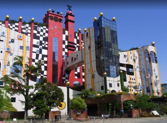 而在《名偵探柯南》里出現(xiàn)的垃圾處理廠也有真實場景。由宮崎駿的偶像百水先生進行外觀設(shè)計的大阪舞洲島垃圾處理廠,遠(yuǎn)遠(yuǎn)看去仿佛游樂場,不知情的人絕不會把它和垃圾聯(lián)系在一起。處理廠干凈整潔、色彩明亮得恍若安徒生的童話世界,紅黃的條紋象征著燃燒的火焰,形態(tài)各異的可愛窗子與爬山虎裝點著墻壁,標(biāo)志性的長管煙囪令人想起長發(fā)公主的城堡……
