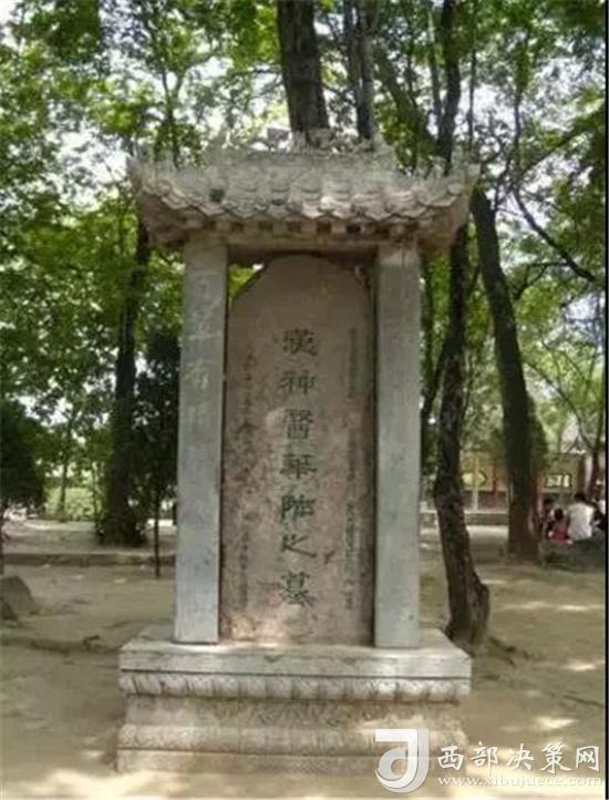 神醫(yī)華佗墓,在石舫東邊的巨石旁,有一《漢神醫(yī)華陀墓》碑。華陀死后并沒葬于此,但為什么有墓碑呢?據(jù)《后漢書•華陀傳》記載:當年華陀有一好友名魯先生隱居在華山白麓龕,華陀常來華山探友,且常留住這里,和魯先生一起作五禽游戲,一起采藥、制藥濟世。他在平時總愛穿戴魯先生的道袍方巾,腰系一個大藥葫蘆,下山為百姓診治疾病。被曹操殺害后,冤魂直來華山,向好友訴屈。魯先生驚覺,即下山探詢,獲得確實噩耗后,魯先生把華陀衣物用具在紅巖村西修了一座衣冠冢,并且嚎啕痛哭送葬。現(xiàn)墓已無存,也不知何時何人將墓碑移至玉泉院內(nèi)。